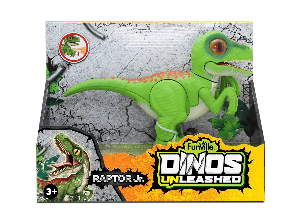 Interaktivni Dinos Unleashed Raptor hoda i riče poput pravog dinosaura. Može pomicati usta i ima mekani gumeni rep. Igračka je prikladna za djecu od 3 godine.