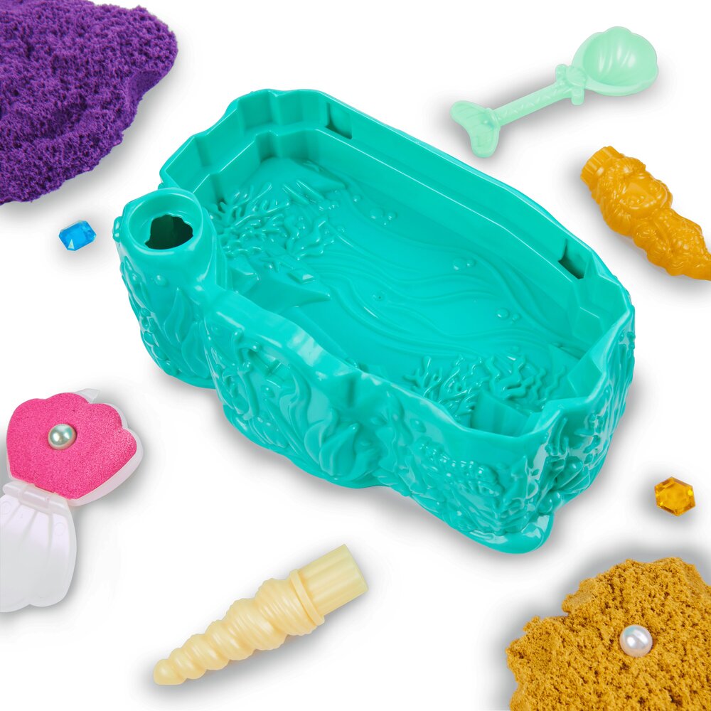 Otkrij morsko blago uz Mermaid Crystal set s 480 g originalnog kinetičkog pijeska, uključujući svjetlucavi zlatni pijesak! Uz pomoć ključanice u obliku sirene otvori višekratnu kristalnu posudu i istraži što se skriva unutra. Set sadrži školjku kalup, lopaticu, valjak i ukrase poput bisera i dragulja za kreativnu igru. Kinetic Sand je čarobni pijesak koji se nikada ne isušuje, omogućujući sate taktilne zabave. Sadržaj pakiranja: 480 g pijeksa (300 g neon ljubičasti, 30 g neon ružičasti, 150 g svjetlucavi zlatni), višekratna kristalna posuda, školjka lopatica, školjka valjak, školjka kalup, 2 dragulja, 4 bisera, upute. Preporučena dob: 3+.