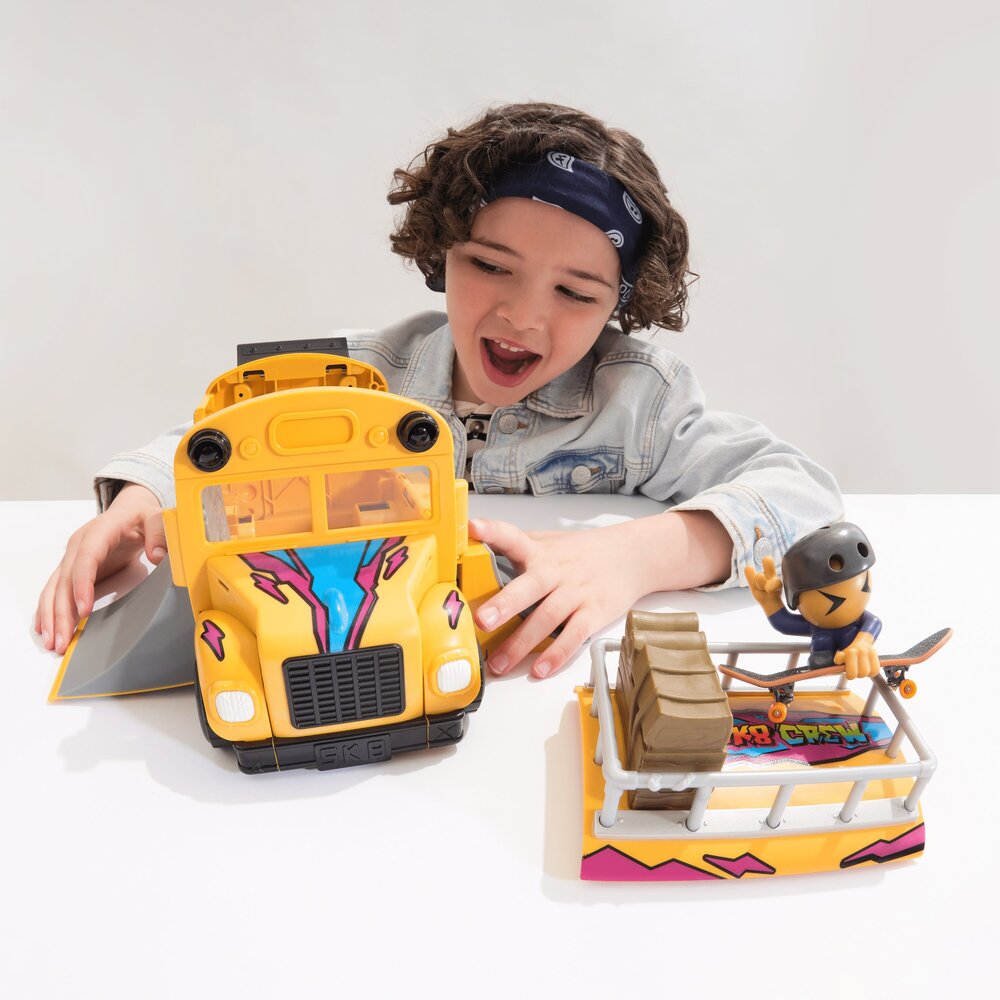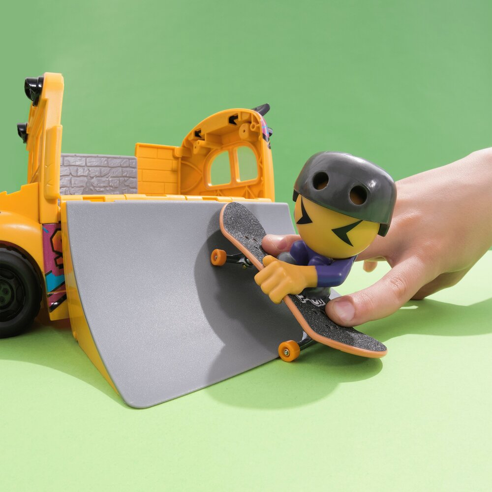 Sadržaj pakiranja: 1 skate bus koji se pretvara u skate park, 1 mini skateboard (96 mm), dodatni skate elementi.