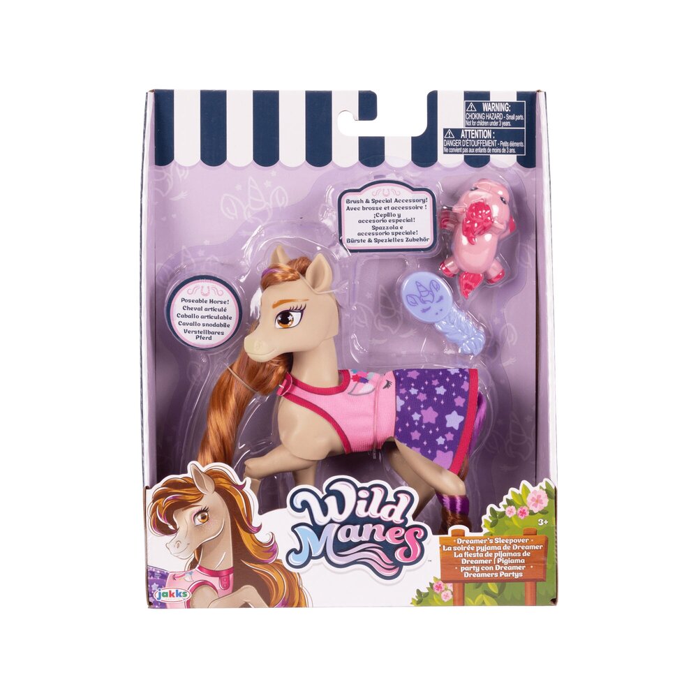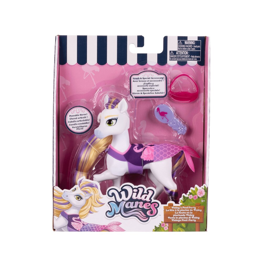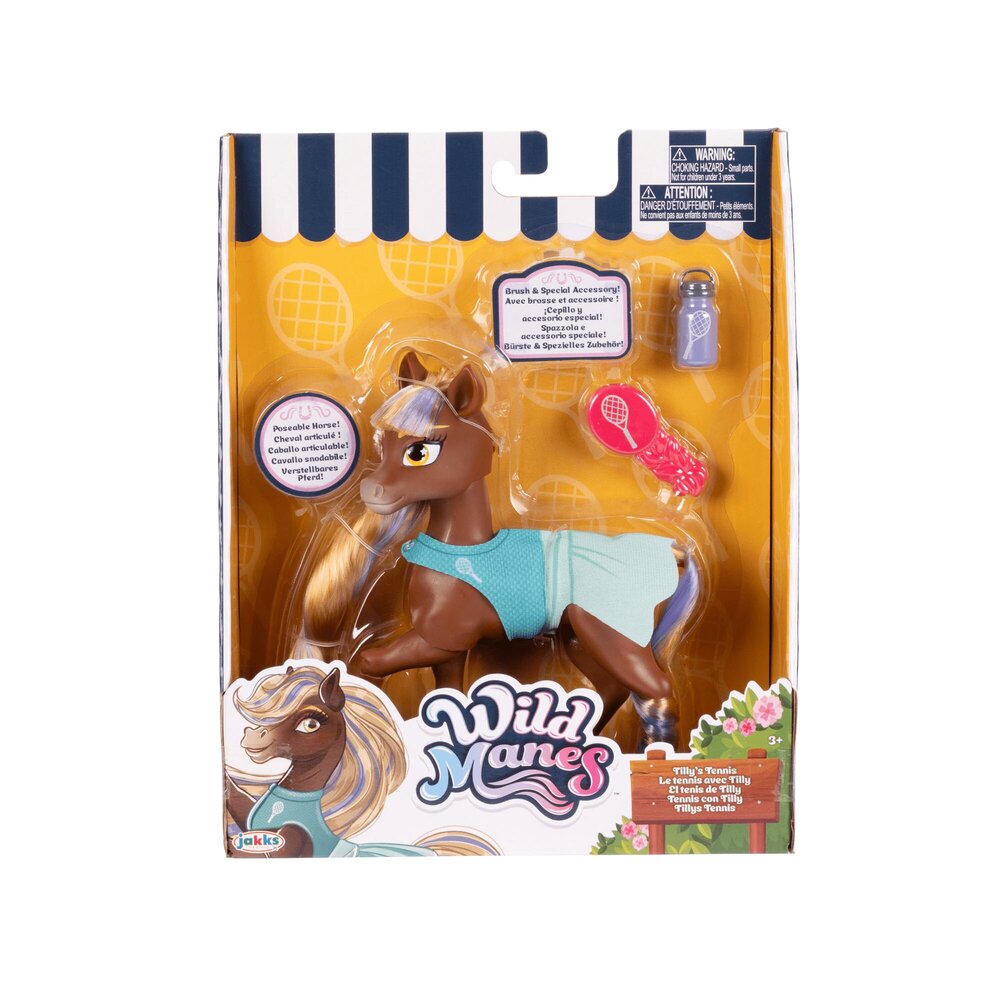 Wild Manes je linija igračaka i animirana serija koja prikazuje svijet šarenih konjića s jedinstvenim stilovima, smještenih u maštovito okruženje zvano Mane Street. Igračke dolaze s pokretnim dućanima i dodacima za igru uloga, a likovi poput Cherie, Bailey i Zoey poznati su po osebujnim frizurama i željom za zabavnim avanturama. Epizode serije dostupne su na službenom YouTube kanalu. Ovaj sortni artikl uključuje četiri različita konjića iz svijeta Wild Manes – Dreamer, Bridget, Tilly i Finley, a svakog od njih krasi jedinstveni prepoznatljivi stil i dva tematska dodatka koji potiču maštovitu igru. Svaka figura ima pomične točke i može se postaviti u razne poze za dinamičnu i raznoliku igru uloga. Set sadrži 1x figura konja, 2 dodatka za igru. Preporučena dob: 3+.