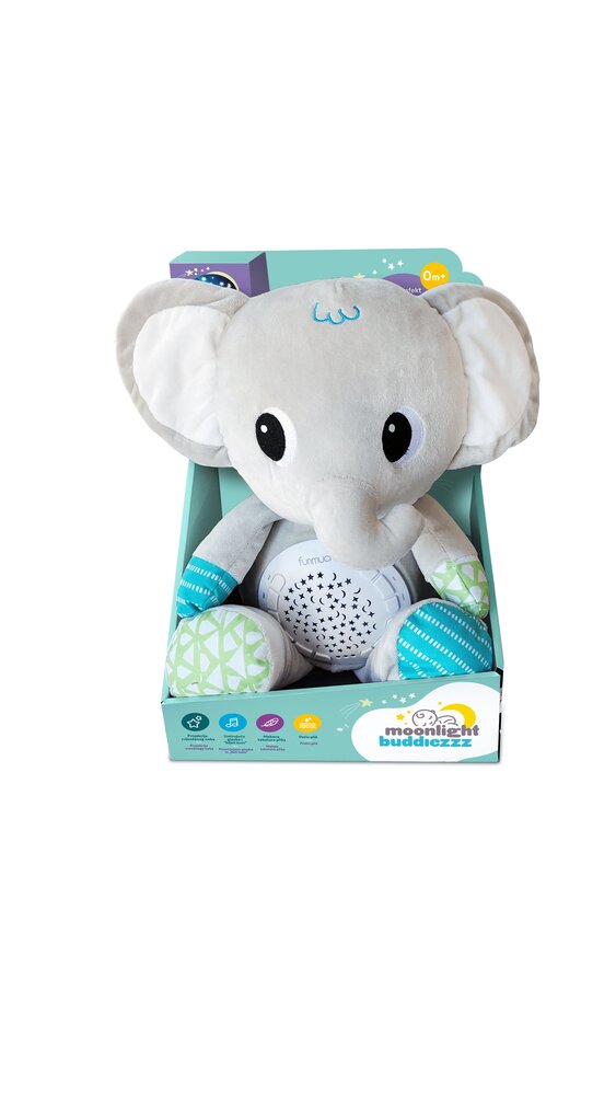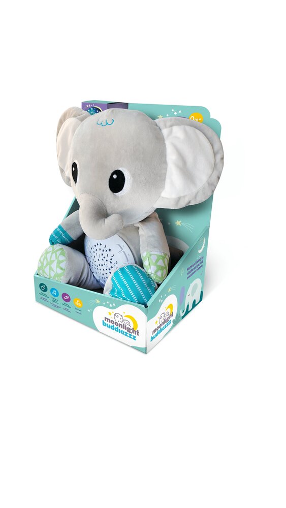 Moonlight Buddiezzz su jedini plišanci za bebu koji će vam zaista trebati! Ovi medeni plišanci dizajnirani su kako bi svojom pojavom i nježnim izgledom umirili bebu, a tehničke mogućnosti uređaja koji je ugrađen u trbuščić igračke pomoći će i najtežim slučajevima nervoze zbog kolika ili izbijanja zubića. Uređaj reproducira deset umirujućih melodija uspavanki, a s mogućnošću odabira pet razina glasnoće uvijek ćete moći reprodukciju prilagoditi potrebama vaše bebe. Uređaj emitira bijeli šum, među mamama omiljen zvuk koji bebe vole, a pomaže pri zatomljavanju vanjskih ometajućih zvukova. Uz pomoć mjerača vremena možete podesiti duljiu reprodukcije uređaja prema svojim potrebama, a dodatnu draž ovoj lijepoj plišanoj igrački daje i LED svjetlo koje svojim blagim radom pridonosi umirujućim osjećajima. Uređaj ima i opciju prikaza zvjezdanog neba koje će dodatno ukrasiti ionako lijepu atmosferu oko bebine kolijevke. Ova plišana igračka iznimno se lako održava – jednostavno izvadite uređaj iz trbuščića igračke te operite plišani dio kako bi uvijek bio potpuno higijenski prikladan za vaše najmanje. Igračke su dizajnirane u nekoliko primamljivih životinjskih likova, visine oko 30 cm. Za ispravan rad uređaja potrebne su 3x AAA baterije (nisu uključene uz proizvod). Preporučena dob: 0+.
